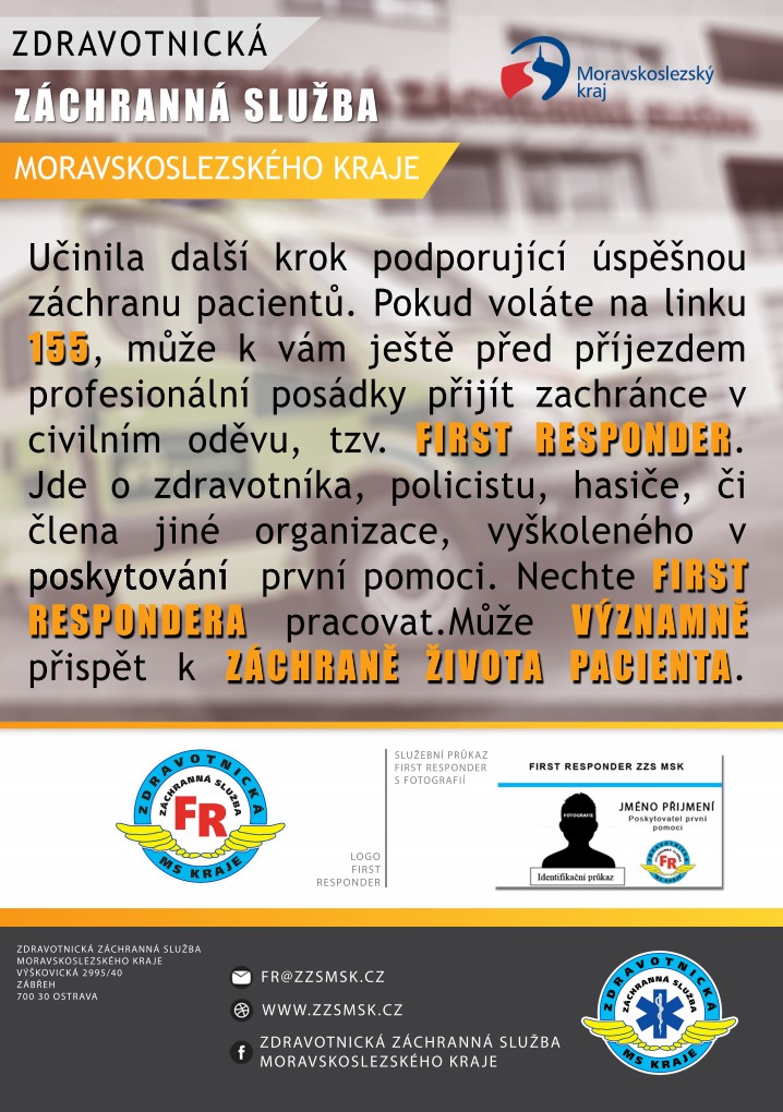 First responder příjde k raněnému ještě před příjezdem záchranné služby, prosíme tedy, abyste ho v případě potřeby nechali v klidu pracovat.