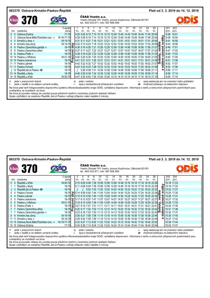 Od 3.3.2019 je v platnosti nový jízdní řád linky 370.