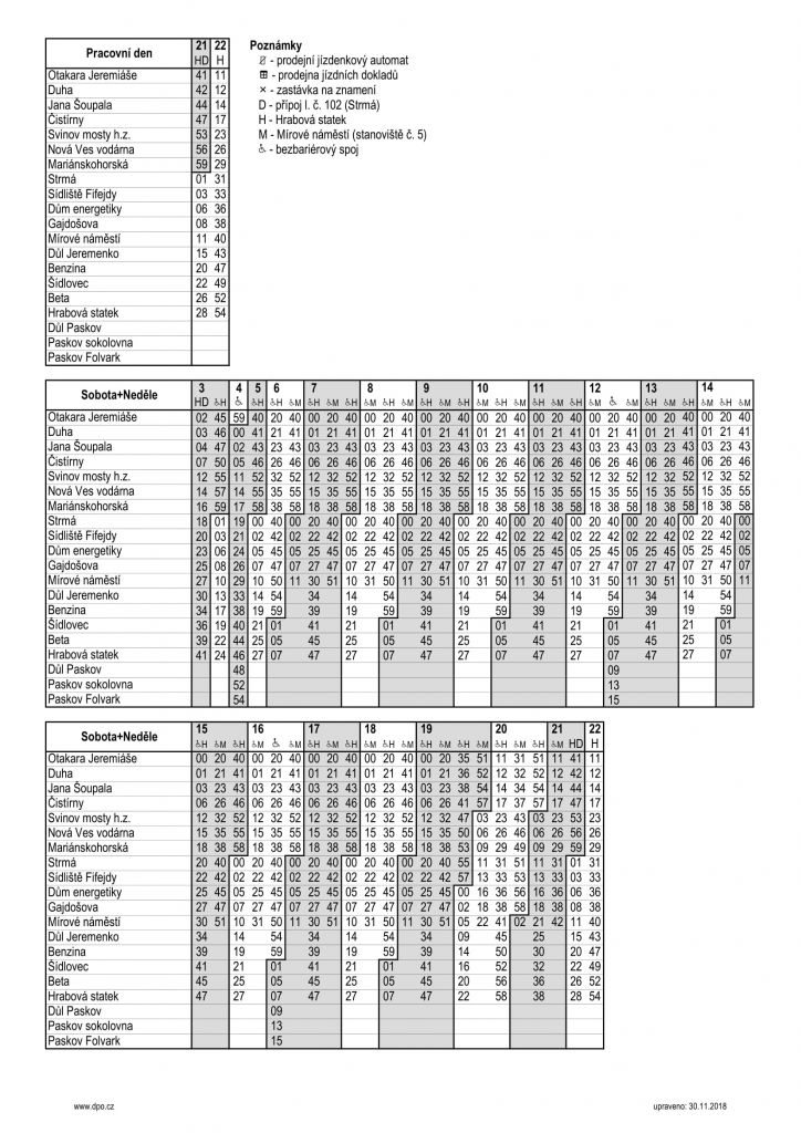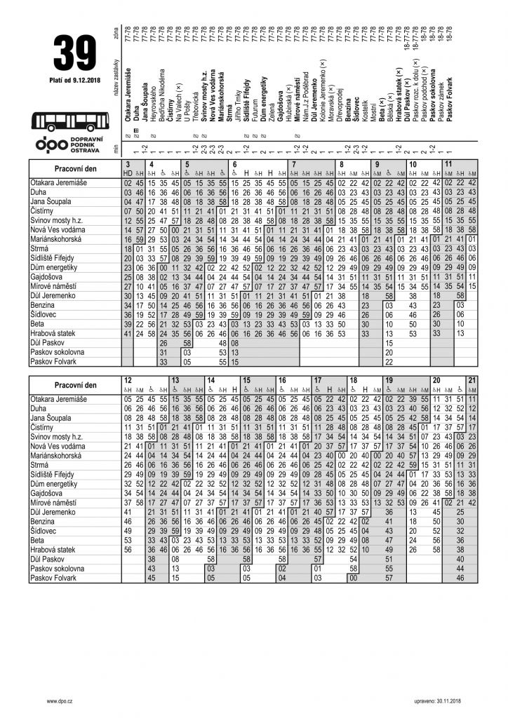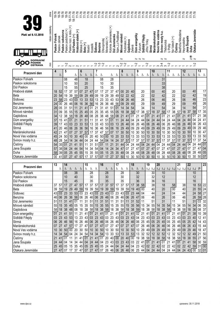 Nový jízdní řád spoje č. 39