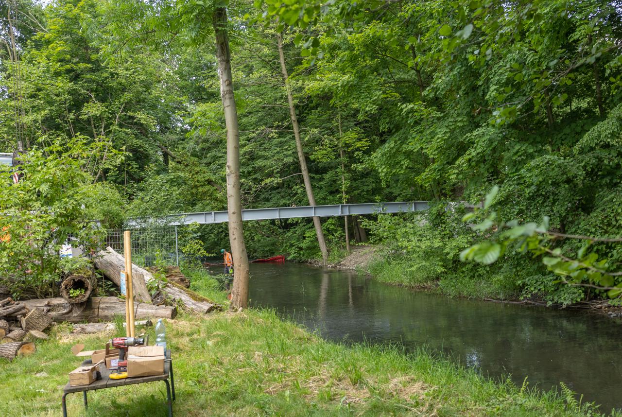 Není to žádný drobek, ale pořádná ocelová lávka s šířkou podlahy 2,0 m a celkovou délkou 18,0 m.