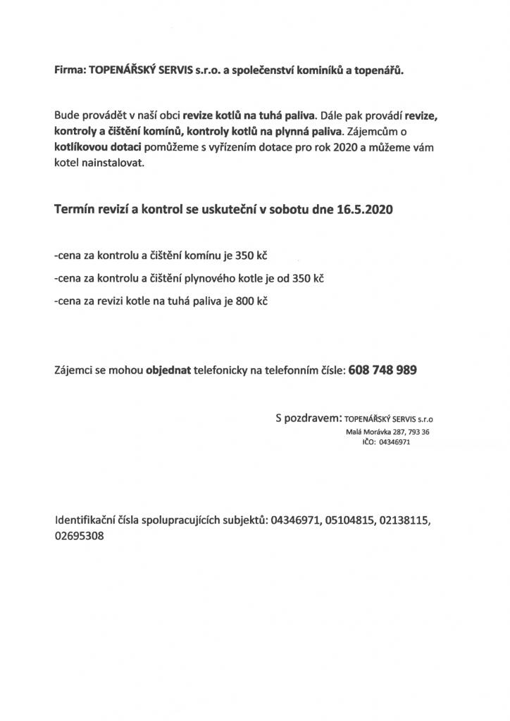 Revize kotlů na tuhá paliva, revize, kontroly a čištění komínů, kontroly kotlů na plynná paliva.