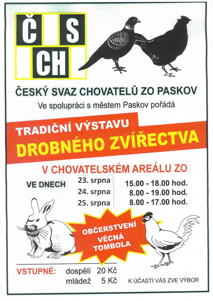 Český svaz chovatelů ZO Paskov Vás zve na TRADIČNÍ VÝSTAVU DROBNÉHO ZVÍŘECTVA.