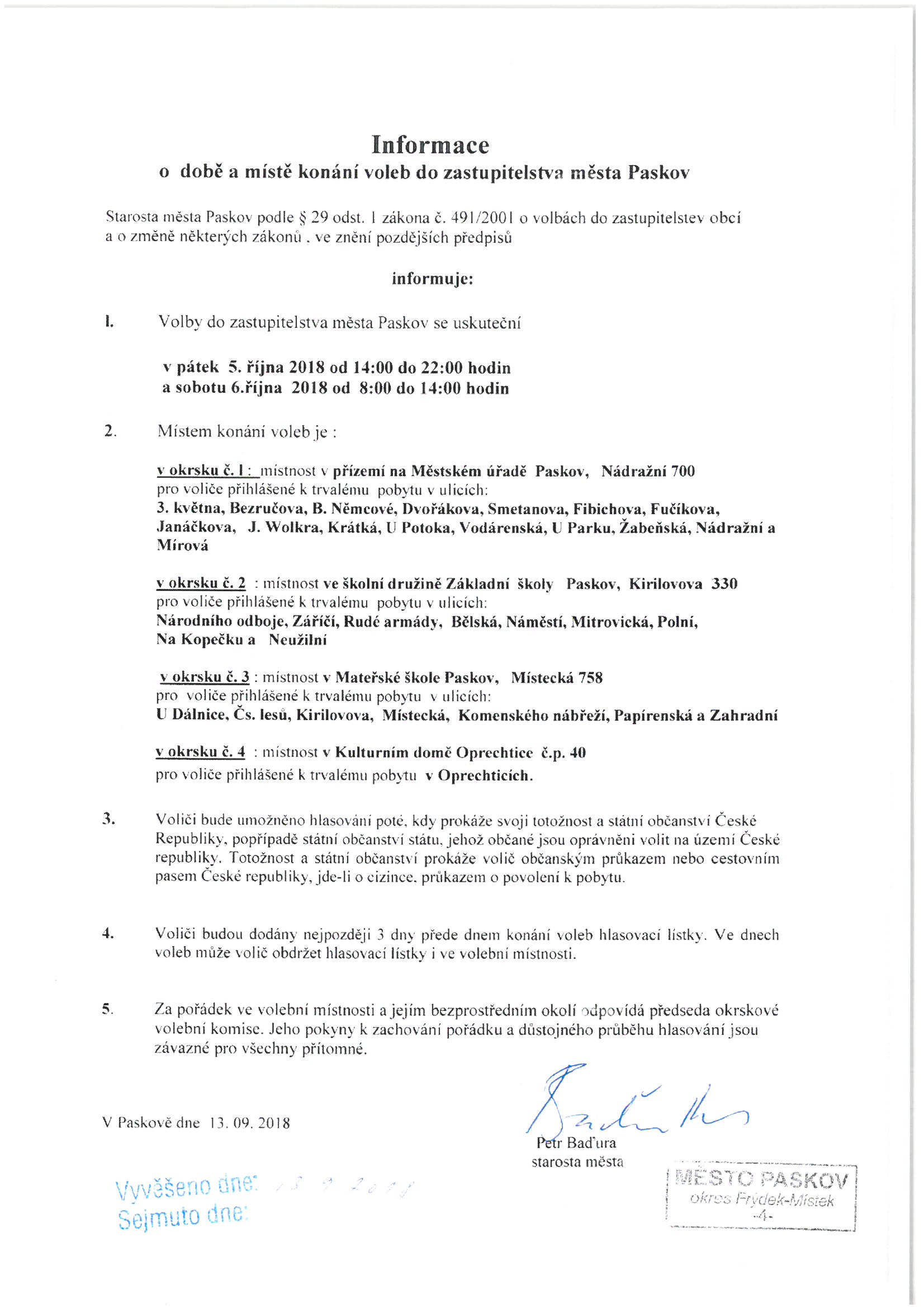 Bližší informace o volebních místnostech dle trvalého pobytu naleznete v přiloženém dokumentu.