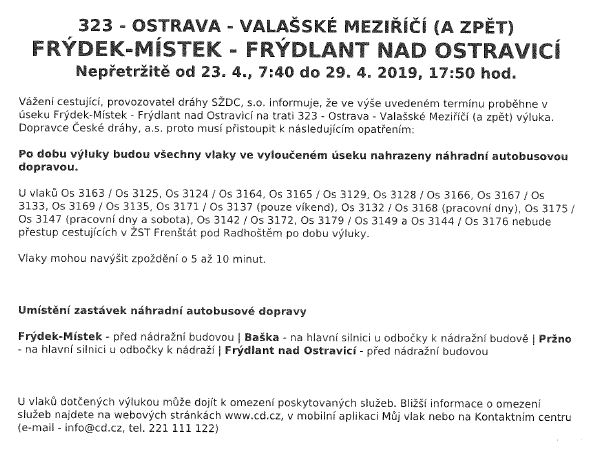 Nepřetržitě od 23. 4., 7:40 do 29. 4. 2019, 17:50 hod.