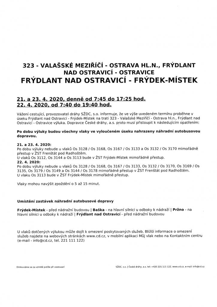 Výluka na trati Ostrava - Valašské Meziříčí v úseku Frýdek-Místek - Frýdlant n. O.
