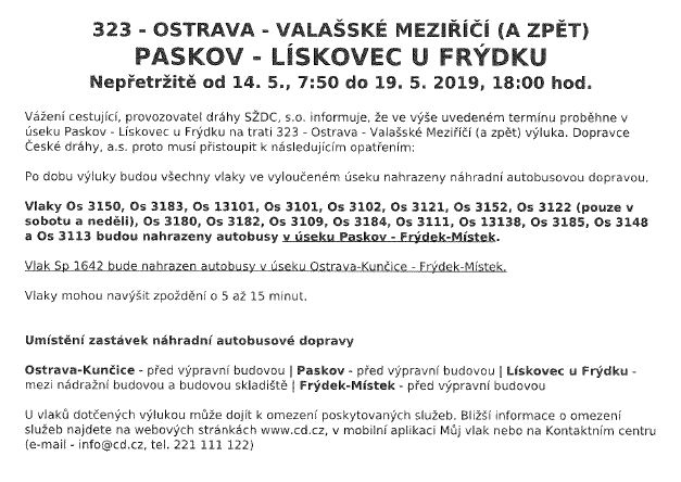 Nepřetržitě od 14. 5., 7:50 do 19.5., 18:00 hodin