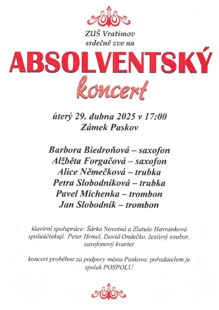 V úvodních absolventských výkonech se vám představí žáci ze tříd Davida Ondečka, Romana Buchala, Martina Cupala a Jiřího Tesaříka.