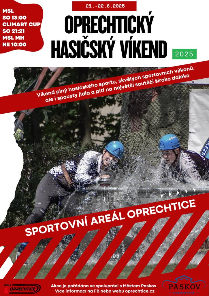 Začátek je v sobotu od 13 hodin a následně od 21 hodin v kategorii dospělých, v neděli od 10 hodin v kategorii mladých hasičů. Přijďte si užít víkend plný hasičského sportu ale i skvělého jídla a pití do sportovního areálu v Oprechticích!