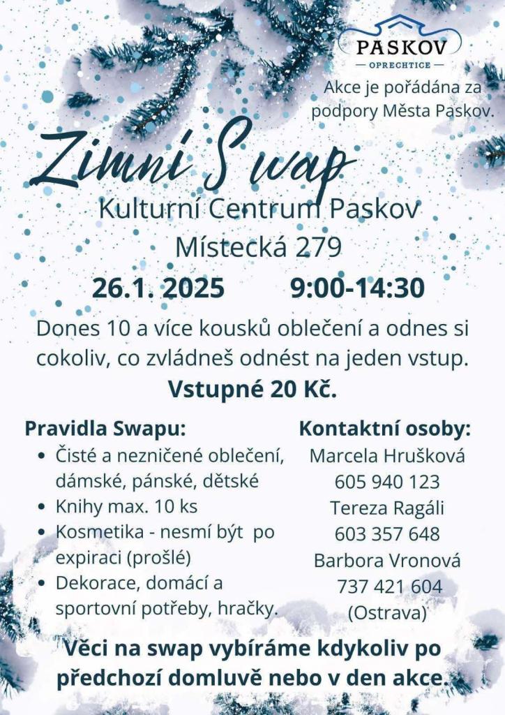 První letošní swap oblečení, bot, hraček a dalších věcí, které vy už nepotřebujete, ale dalšímu se můžou hodit se uskuteční 26. 1. 2025 v KCP.